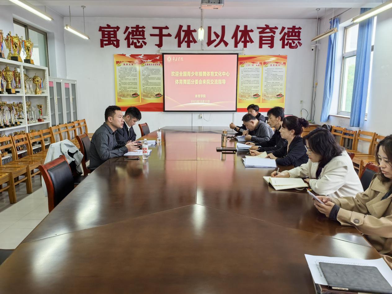10月11日下午,全国青少年操舞体育文化中心体育舞蹈分委会、山东省演出行业协会国标舞委员会秘书长邢政、副主任欧懿来yl23411永利座谈交流。公司党政领导及体育艺术教研室相关教师参加了座谈。